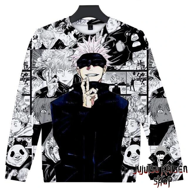 Enfile le pull de Gojo Satoru et devient le plus puissant sorceleur en imposant ton style de fan du manga Jujutsu Kaisen !Â