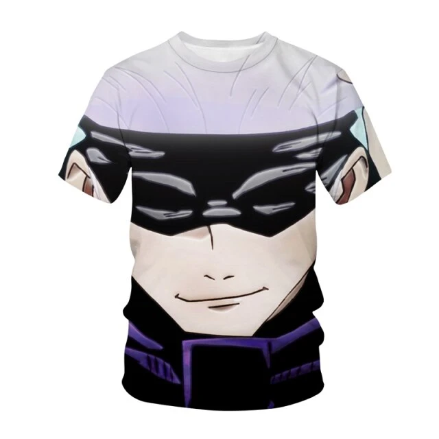 Tu es fan de Gojo Satoru ? Alors n’hĂ©sites plus enfile ce T-shirt avec le visage du meilleur exorciste et sensei de Jujutsu Tokyo High  !