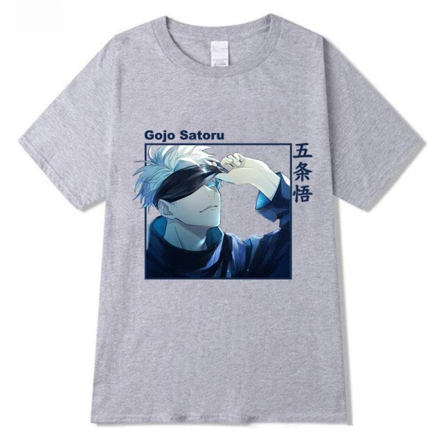 DĂ©couvre tous les secrets du plus grand exorciste du monde avec le Tee-shirt de Gojo Satoru qui lève son masque pour utiliser son pouvoir  !Â